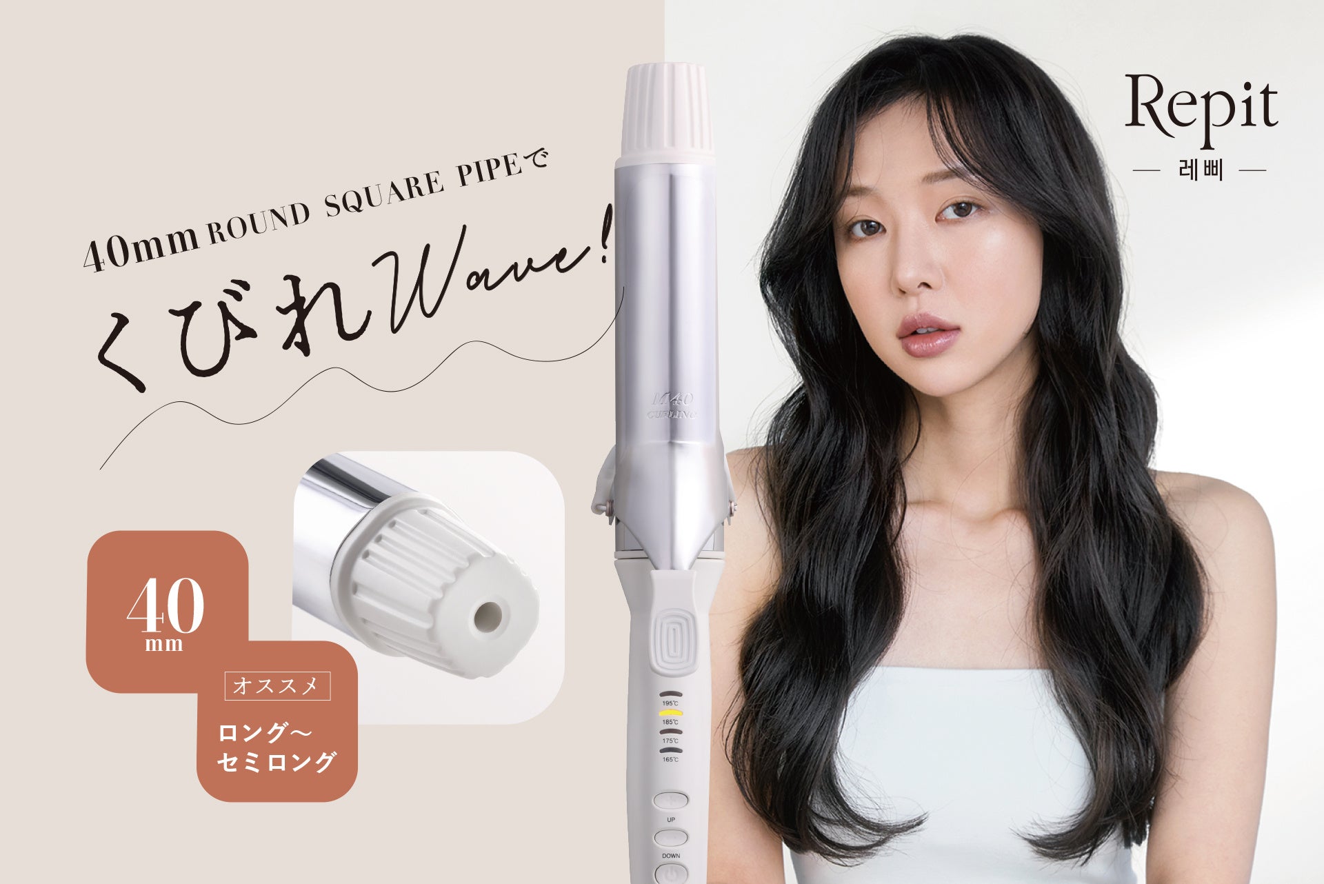 独自に開発した、四角形と円形を掛け合わせたスクエア型のカールアイロンは、程よいテンションがかかることで、40mmという太巻きのパイプながら、弾力とツヤのあるカールが長続きします。