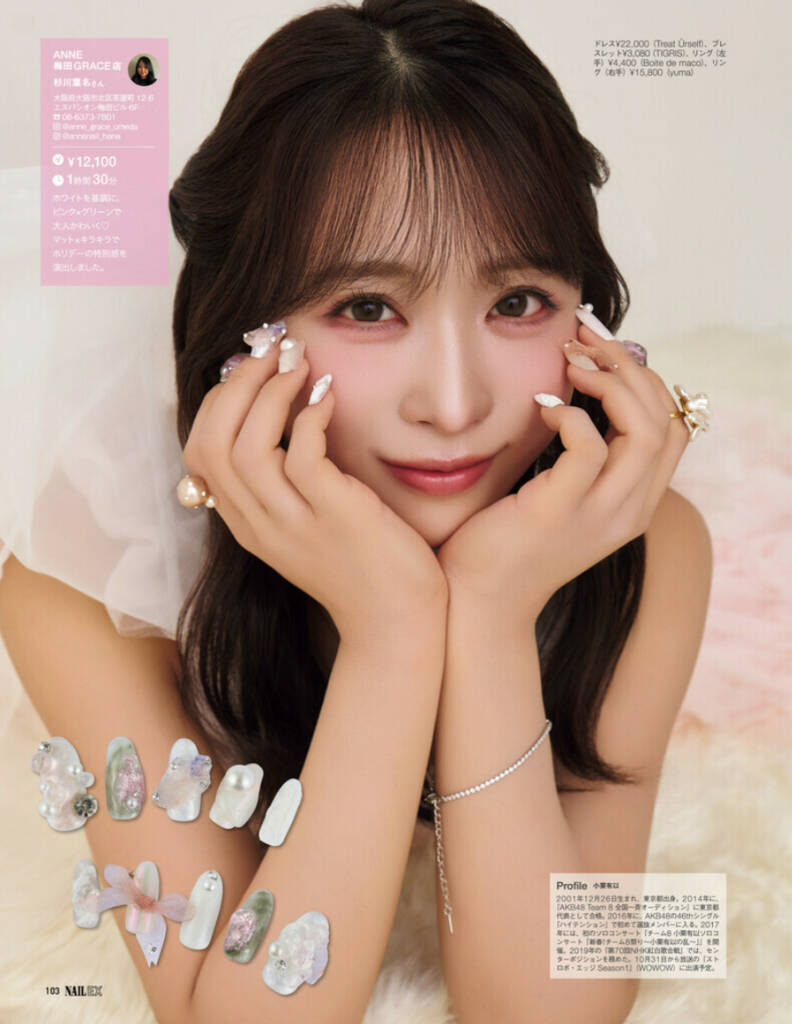 AKB48のメンバーでアイドル、モデル、女優として活躍する小栗有以さんと最新ネイルカタログ